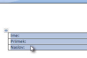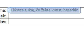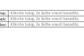Polja z besedilom so bolj priročna, če vnašate podatke brez uporabe miške in si pomagate samo z tipko Tab za menjanje polj. |