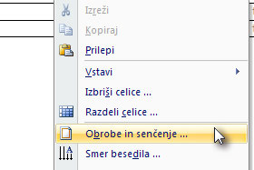 Sedaj pa z desnim miškinim gumbom kliknite na ustvarjeno tabelo in izberite Obrobe in senčenje ...