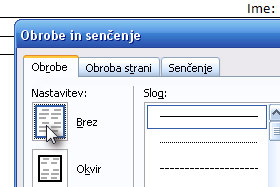 V novem oknu Nastavitev določite Brez in kliknite na gumb V redu.