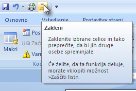 Sedaj pa bomo dokument zaklenili, da bo možno na njemu samo vnašanje podatkov.