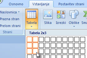 Kliknite sedaj na zavihek Vstavljanje in ustvarite tabelo 2x3 (glej sliko).