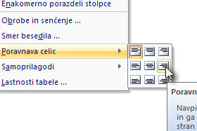 ... , kliknite na njih z desnim miškinim gumbom, izberite Poravnava celic in nato izebrite desno poravnavo (glej sliko).