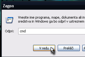 V okno, ki se vam bo odprlo napišite cmd in kliknite V redu ali pa pritisnite tipko ENTER.