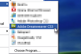 Izberite Open with ali Odpri z in izberite Adobe Dreamweaver.