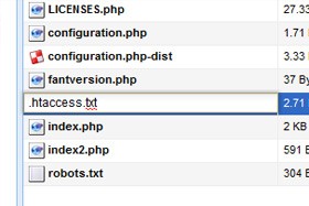 Sedaj poiščemo datoteko "htaccess" in desni klik nanjo in "preimenuj".