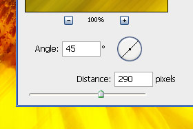 V novem oknu Angle nastavite na 45 stopinj in Distance 290 pixels.