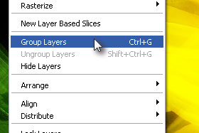 Kliknite zgoraj na Layer in izberite Group Layers. |