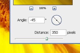 V novem oknu Angle nastavite na -45 stopinj in Distance 350 pixels. Seveda lahko kasneje poizkusite z drugačnimi vrednostmi. Kliknite na gumb OK. |