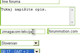 Napišite ime foruma, opis, povezavo, jezik in časovni pas.