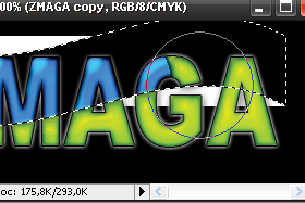 Z orodjem Eraser tool začnite brisati še ostali del teksta, torej zeleni tekst.