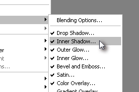 Kliknite zgoraj na Layer > Style > Inner Shadow.