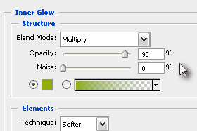 Kliknite na Inner Glow in prepišite podatke s slike.