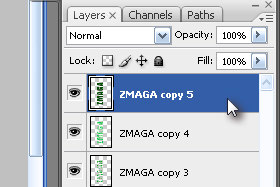Kliknite sedaj z miško na belo barvo pri dupliciranem layerju (glej sliko), da jo označite.