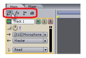 Vsak tir ima možnost različnih menijev: Input/Output, meni za efekte (FX), Sends in EQ (regulator frekvenc).