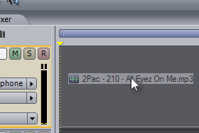 Da ga premaknete med tire ga kliknite, pridržite levi miškin klik in potegnite posnetek na tir. Če dvokliknete na posnetek vam ga odpre v oknu za urejanje. |