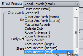 Tu izberite enega izmed reverbov, odvisno kateri efekt paše na vaš posnetek in odvisno od vašega okusa. (Ne pretiravajte z reverbom!)