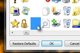 ![]() V seznamu se pomaknite desno in najdite prazno ikono. Kliknite na ikono in potrdite spremenjeno.