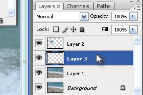 Spodnja dva layerja skrijete tako, da kliknite na ikone z očesi pred predoglednimi sličicami layerjev (glej sliko).