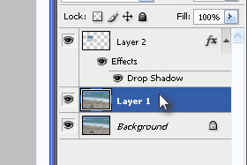 Novi layer premaknite pod prej dupliciranim layerjem (glej sliko).
