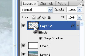 To morata biti dupliciran del fotografije in novi z belo barvo zapolnjen layer. Potem pa pritisnite tipki Ctrl + E, da jih združita. |
