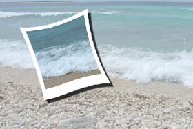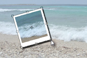Potem pa ustvarite selekcijo, ki bo večja od dupliciranega dela fotografije in bo predstavljala belo barvo, kot ga poznamo na polaroidih (glej sliko). Pritisnite tipko D, da nastavite črno / belo barvo. Potem pa pritisnite tipki Ctrl + Del, da zapolnete ozančeni del z belo barvo. Sedaj bi moral biti nov layer zapolnjen z belo barvo in bi se moral nahajati pod dupliciranim delom fotografije. |