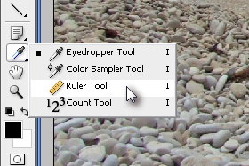 Izberite orodje Ruler Tool. Držite z miško na orodju Eyedropper Tool (bližnjica je tipka I) toliko časa, dokler se ne prikažejo nova orodja. |