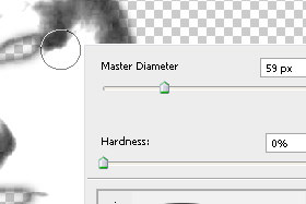 ![]() Kliknite z desnim miškinim gumbom na dokument in nastavite Master Diamter (velikost čopiča) na velikost očesa. |