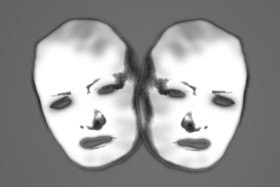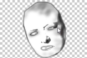 ![]() Sedaj z miško potemnite dele obraza okoli oči in na robovih (glej sliko). |