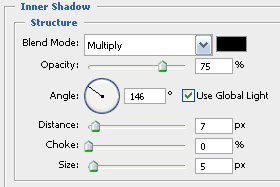 ![]() Kliknite še na Inner Shadow in ponovno nastavite podobne vrednosti kot jaz. |