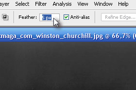 ![]() Zgoraj v orodni vrstici določite Feather okoli 5px (glej sliko). |