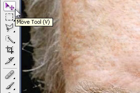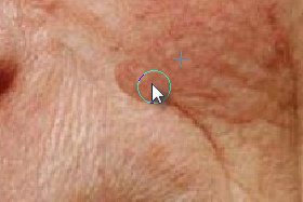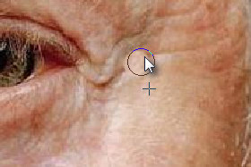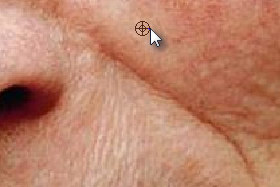 ![]() Potem pa spustite tipko Alt in počasi klikajte po gubah, da jih boste z uporabo odtenkov lepe kože popravljali. |
