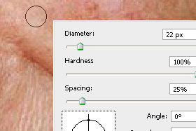 ![]() Izbrali smo orodje, s katerim bomo uporabljali lepe dele kože in jih uporabili s prelivanjem na manj lepih delih kože. |