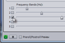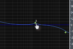 Če jo povlečete navzgor pomeni, da boste glasnost frekvence pri tej točki povišali, če jo pa povlečete navzdol pa boste glasnost frekvenc znižali. Ko povlečete piko v levo zmanjšate frekvenco, ko pa povlečete piko v desno pa frekvenco povišate. |