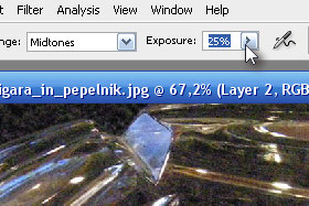 Zgoraj v orodni vrstici določite Exposure na okoli 25% (glej sliko).