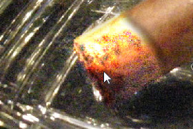 Sedaj pa z miško z izbranim orodjem počasi ustvarite ožgane črte pri cigari (glej sliko).