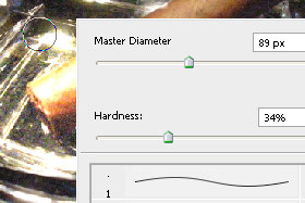 Kliknite z desnim miškinim gumbom na dokument in izberite želeno velikost Master Diameter (velikost čopiča) in Hardness na okoli 34%.