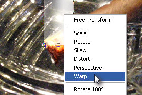 Pritisnite tipki Ctrl + T, da layer lahko transformirate, nato kliknite nanj z desnim miškinim gumbom ter izberite Warp.