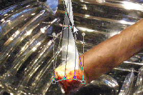 Sedaj pa v Warp transformaciji najprej povlecite spodnja dva dela layerja (glej sliko) ...