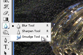 Držite z miško na orodju Blur Tool (bližnjica je tipka R) toliko časa, dokler se ne prikažejo ostala orodja. |