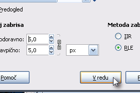Odpre se vam novo okno. Radij zabrisa naj bo v obeh oknih 5,0. Kliknite V redu.