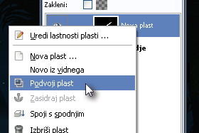 Z desnim miškinim gumbom kliknite na novo plast in izberite Podvoji plast.