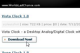 Jaz bom izbral Vista Clock kliknemo na gumb Download now!