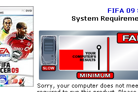 ![]() Ko odprete spletno stran vtipkate ime igre ali pa jo izberete iz seznama iger. Jaz sem s seznama izbral igro Fifa 09. Ko si izberete igro kliknite na gumb "CAN YOU RUN IT?" |