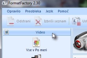 Zaženite Format Factory, kliknite zgoraj levo na video in nato spodaj izberite poljuben format.