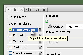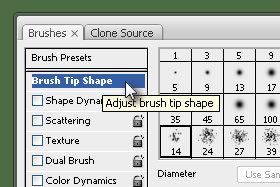V oknu Brushes nato kliknite na Brush Tip Shape.