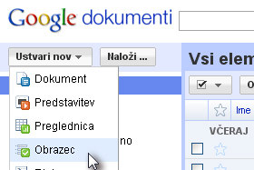 Potem pa kliknite na Ustvari nov in izberite Obrazec.