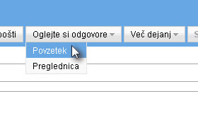 Kliknite na gumb Oglejte si odgovore in izberite Povzetek. Lahko pa si podate ogledate tudi znotraj preglednice. |