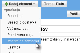 Sedaj bomo še spremenili obliko vprašalnika oziroma obrazca.