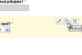 Postavite se z miško čez zadnje vneseno vprašanje in kliknite na ikono Podvoji. |