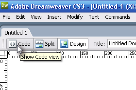Kliknite na zavihek Code, da odprete kodni način urejanja spletne strani.